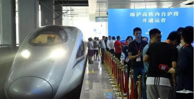 綿瀘高鐵內(nèi)自瀘段于2016年6月開工建設,歷經(jīng)5年建設后開通運營,也標志著川南兩大城市瀘州、自貢首次通高鐵,瀘州更是首次通客運鐵路。當日,在首發(fā)列車上可看到,高鐵駛出瀘州站后,沿途站滿了瀘州市民,特意來見證歷時性一刻。